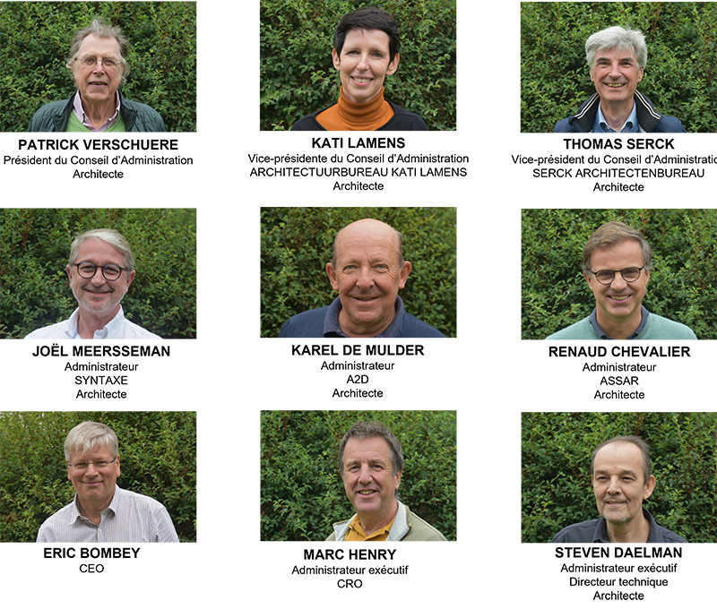Nicolas Léonard, Patrick Verschuere (président), Thomas Serck, Steven Daelman (COO), Eric Bombey (CEO), Karel De Mulder (vice-président), Geert Maelfait (secrétaire), Kati Lamens, Marc Henry (CRO); Philippe Laporta (excusé)